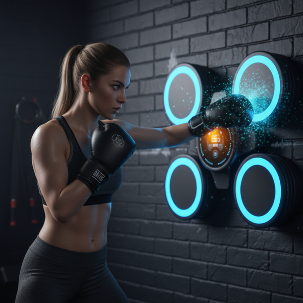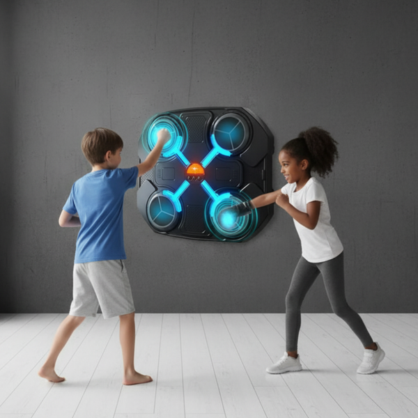 La Máquina BoxBeat™ es tu solución definitiva. Transforma tu salón en un gimnasio interactivo, combinando la intensidad del boxeo con la diversión de un juego de luces y ritmo. Conecta tu móvil vía Bluetooth, elige tu música y ¡a golpear! Sus sensores inteligentes se iluminan para guiarte, mejorando tus reflejos y cardio de forma dinámica, todo al ritmo de tu música favorita.